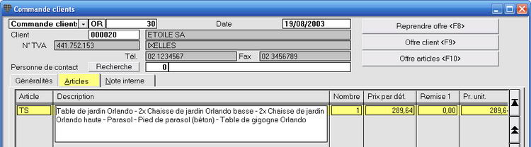 La ligne de commande se présente ensuite comme suit (remarquez également que le prix de vente a été adapté):