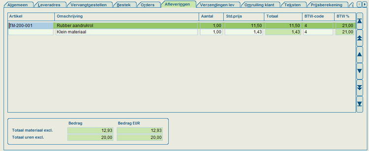 De bedragen uit de tabbladen Materiaal en Werk worden automatisch getotaliseerd en ingevuld in het onderste deel van het scherm.